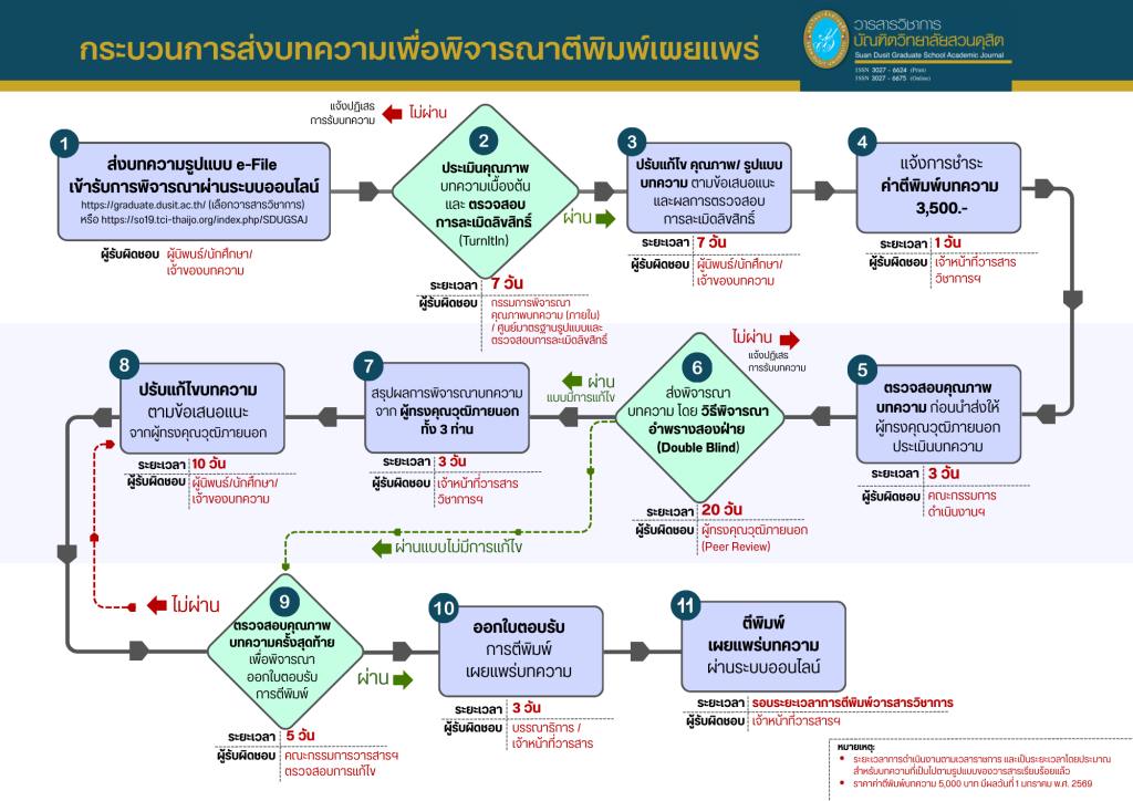 - ปรับแก้ไข คุณภาพ/รูปแบบบทความ ตามข้อเสนอแนะ และผลการตรวจสอบการละเมิดลิขสิทธิ์